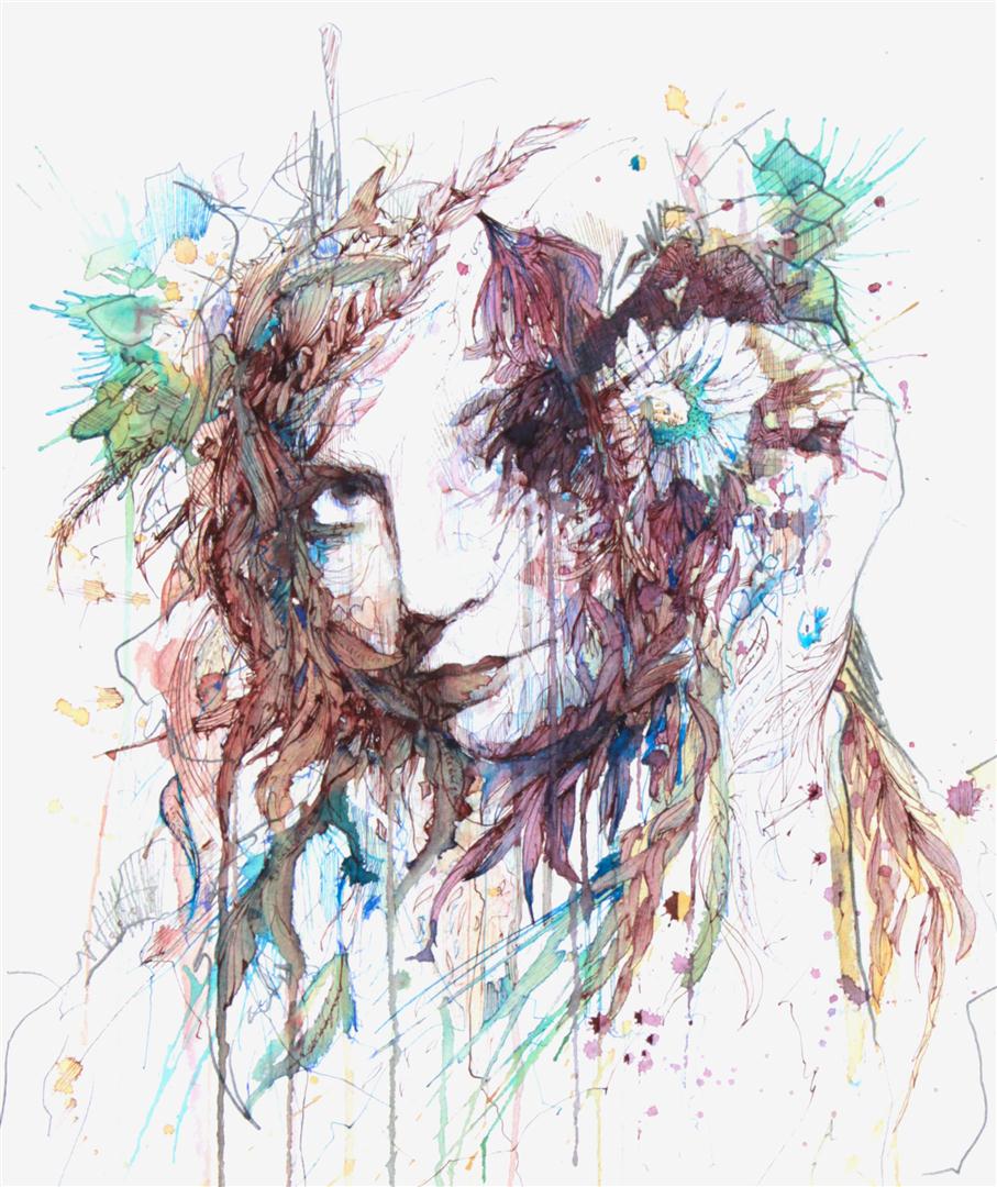 Margarita by Carne Griffiths, Ink and Tea on Watercolour Paper