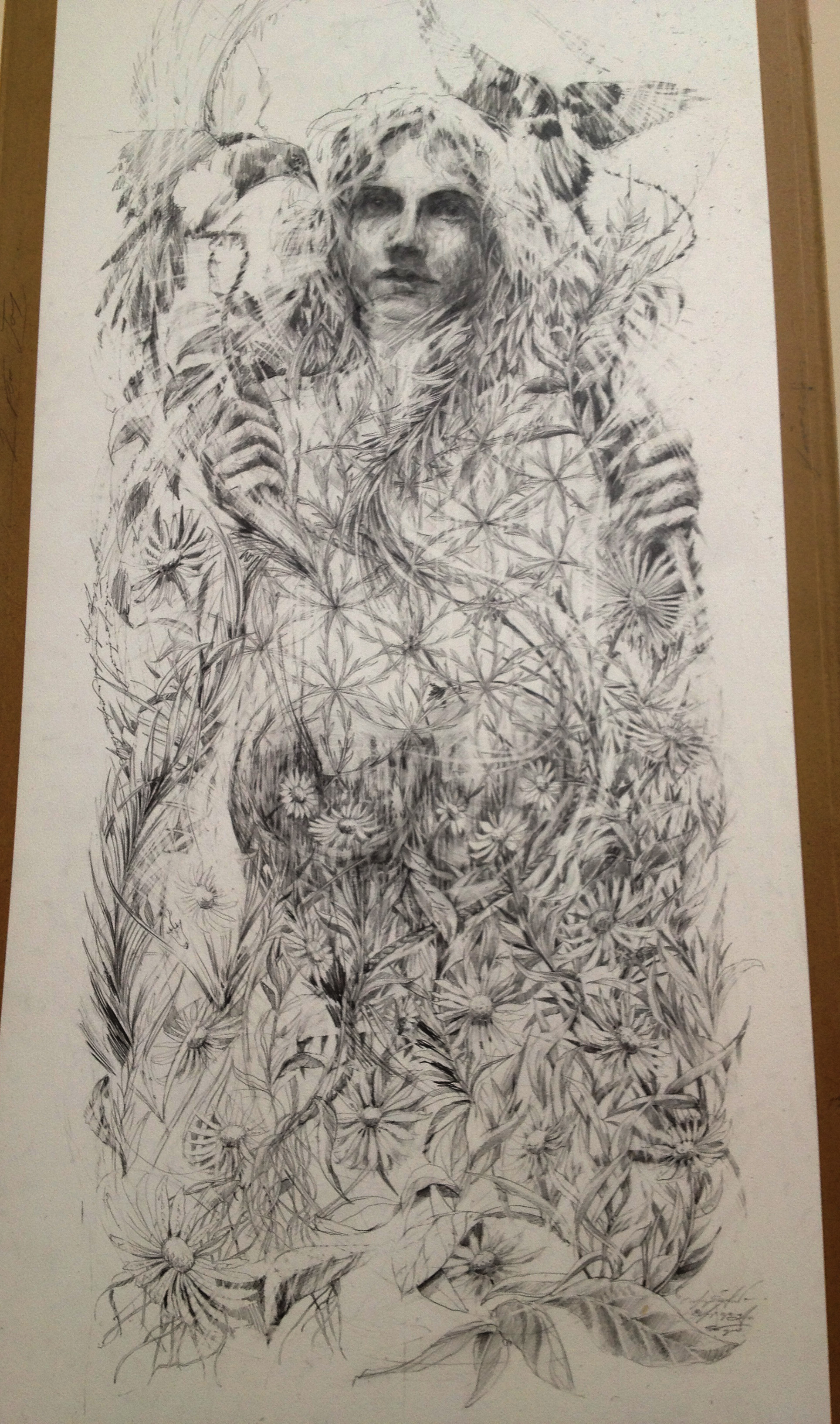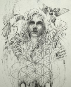 Inspiration for 2 of the pieces created this year and a planned series of continued work comes from the wonderful wing assignment project devised and curated by Nina Farrel a former colleague at Maidstone College of Art. As well as providing a platform and outlet for the piece 1 for sorrow, the project seemed intertwined with what was happening in daily life. Following 1 for sorrow, the piece 2 for joy is again an intensely personal reflection of receiving the news that I am to be a father to twins this September. Amazingly as timing would have it – the opening of the exhibition coincides with our delivery date. It will be a shame to miss the exhibition as it features a work that is a real contrast to other pieces created this year, it has a real softness and warmth and is purely concerned with our relationship with nature and if you look very carefully beyond the flower of life symbol…