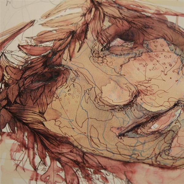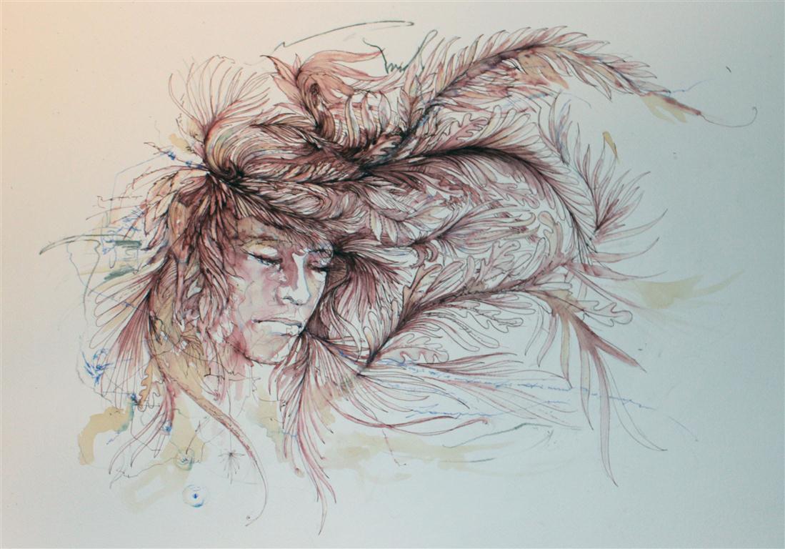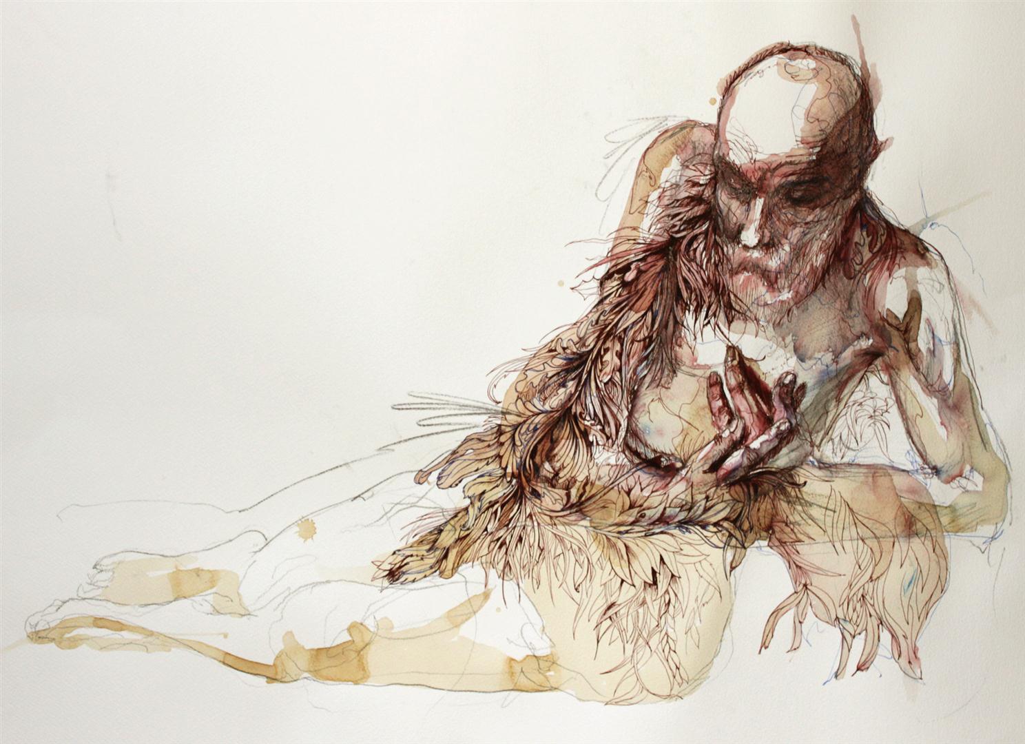 Barrier was created for exhibition at Stroke Art Fair in Munich, 2013. The original was shown with Coates and Scarry and is one of the few pieces featuring a male subject. The original is created with expressive graphite lines and then layers of ink stripped back with boiling water. The piece also features a delicate barbed wire motif printed with a rubber stamp as if in a wallpaper pattern.