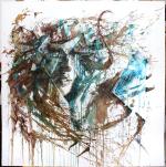 Of the works showing as part of the fragments exhibition, ‘1 for Sorrow’ and’ the Storm’ both underwent a similar process and this is reflected in the finished work. They may not be as light or as clean as other works in the gallery, but the grit and grime of these pieces honestly represent the journey gone through to bring the piece to it’s conclusion. They are both real battles in terms of their creation and the emotional involvement in the work.