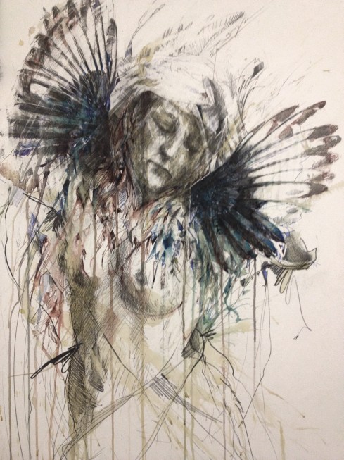 The smaller portraits ‘momentary’ series focus on calm and meditation – both in the approach to the drawings but also in the subject itself – they are quiet moments of contemplation and time taken to reflect. These pieces were created at the end of the show and are a pause point and possibly and indication of where the work will turn next.