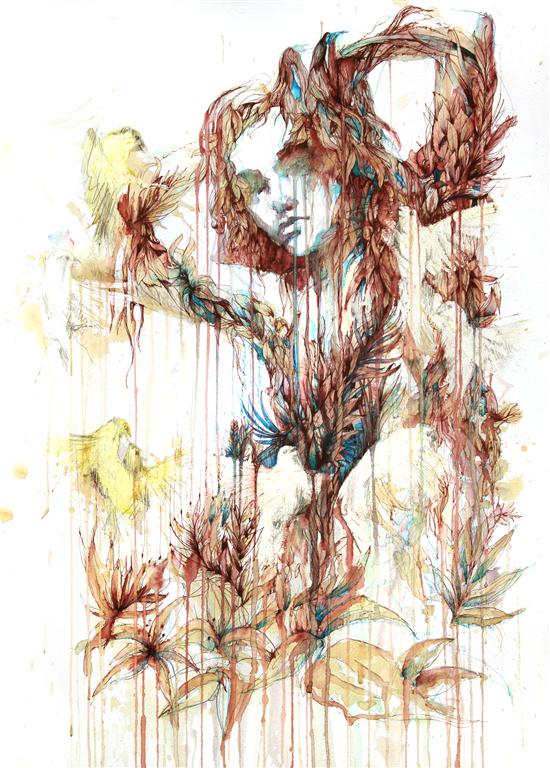 The piece itself was created in January of 2016 and experiments with creating more layering and more detail than usual, I wanted to give Derbby an image that would translate well in the reduction to a print, making the detail finer and crisper. Continuing on from the earlier piece this year entitled all I want is everything, the piece reflects on commercial desire, our relationship with nature, and the unattainable. I’ve included some work in progress images below to show the process of making the work.