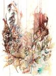 After a short break in Thassos, Greece it has been nice to return to drawing in the studio and preparing for several group shows this summer. shown below are 2 pieces inspired by the recent break – firstly by a book I read whilst away and secondly by the variety of different forms of nature experienced.