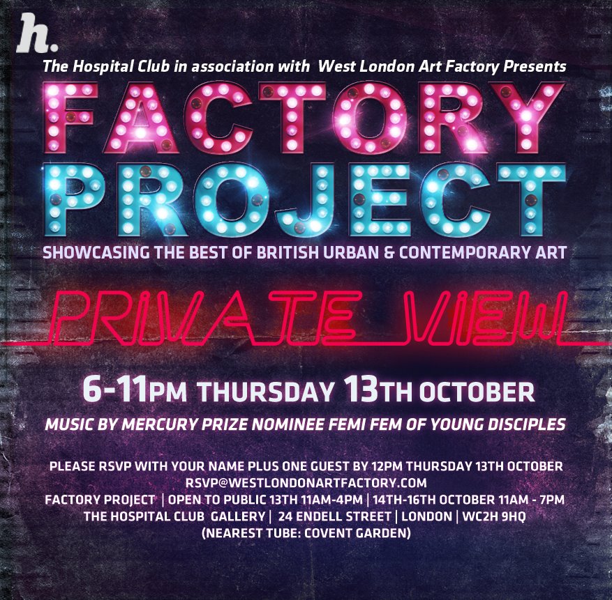 I was invited by Jewel of West london Art Factory to submit 4 works for their show at the Hospital Club – so 4 brand new original pieces – not exhibited before will be showing from the 13th October, looking forward to seeing the range of works on offer, if you want to get over to see them it’s an open invite and free to see, just turn up between 11am and 4pm on the 13th or 11am – 7pm on the 14th-16th October
