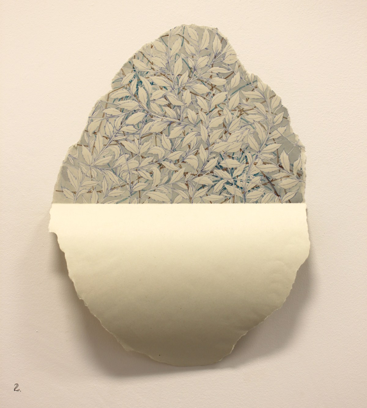 These are new works, influenced by william Morris wallpaper designs that peel back the gallery walls to reveal the undergrowth that was once in its place.