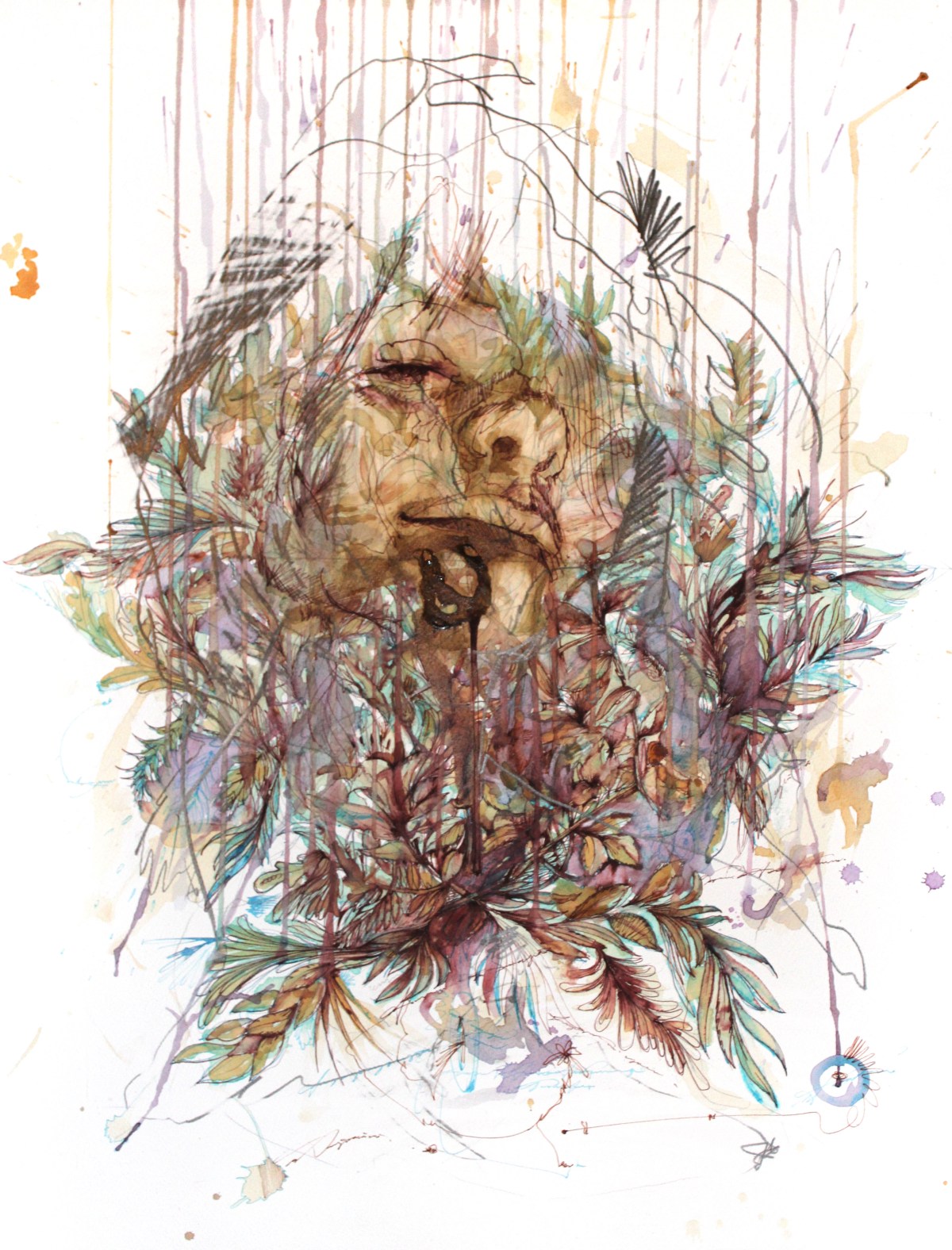 The piece itself was created in January of 2016 and experiments with creating more layering and more detail than usual, I wanted to give Derbby an image that would translate well in the reduction to a print, making the detail finer and crisper. Continuing on from the earlier piece this year entitled all I want is everything, the piece reflects on commercial desire, our relationship with nature, and the unattainable. I’ve included some work in progress images below to show the process of making the work.